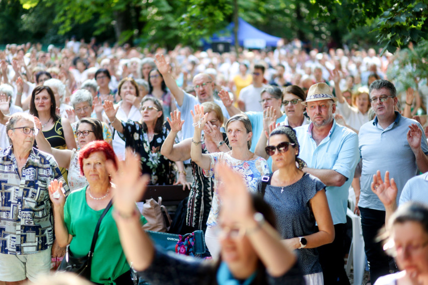Kérjük az Urat és a Szűzanyát, hogy ne legyen többé zsémbes, szomorú katolikus. Azt kérjük tőled, Uram, a szent rózsafüzéren keresztül, hogy egész Magyarország teljen meg Szeretetlángoddal! Tűnj el, sátán, Magyarország az Istené!” – fohászkodott Jim Blount, a felszabadultan boldog zarándokok helyeslése mellett.