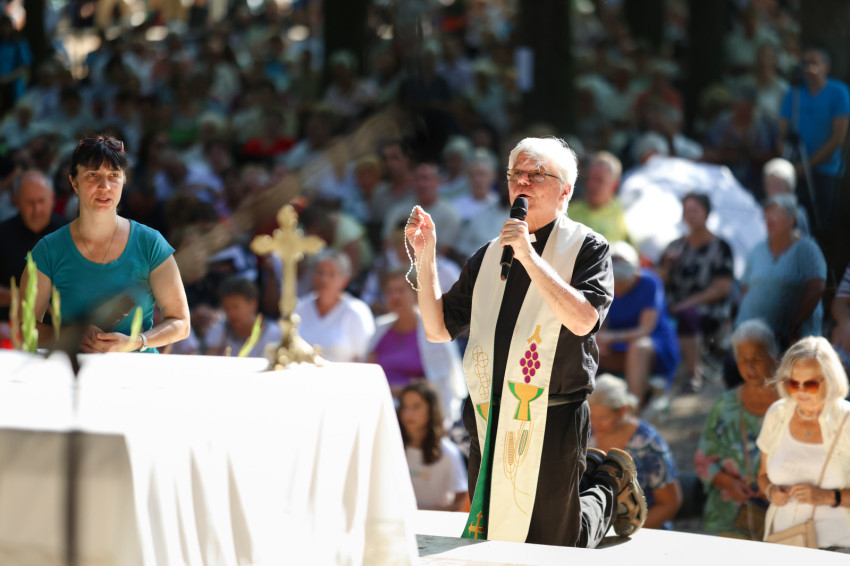 Az Üdvözlégy elimádkozását követően a szalézi szerzetes kifejtette: a mennyből kapott rózsafüzér a legerősebb ima. Elimádkozásával hitet teszünk amellett, hogy a megváltás megtörtént ezen a bolygón. Gábriel arkangyal eljön Máriához, és megjövendöli neki a legcsodálatosabb eseményt. „Kegyelemmel teljes…” Ebben egyszerre van benne a múlt, a jelen és a jövendő. Az a lány, akihez Gábriel eljött, létezésétől kezdve tele van kegyelemmel. Ezért hirdette ki az Egyház a szeplőtelen fogantatás dogmáját. Mária elvezet bennünket isteni fiához, a világ Megváltójához. Egyedül Jézus Krisztus nevére hajol meg minden nép a mennyben, a földön, az alvilágban. Általa üdvözülünk, menekülünk meg a kárhozattól. Az előadó arra kért bennünket, hogy álljunk fel, dicsőítsük Jézus Krisztust, és gondoljuk végig magunkban, mi az, amit emberi erővel nem tudunk megvalósítani. A Szűzanyát pedig kérjük: „Mária, szeretett édesanyánk, vezess minket szent fiadhoz, Jézushoz, aki mindenható Isten, akinek minden lehetséges, akinek nevére meg kell hogy törjön minden rossz, átok az életünkben.” Ezt követően