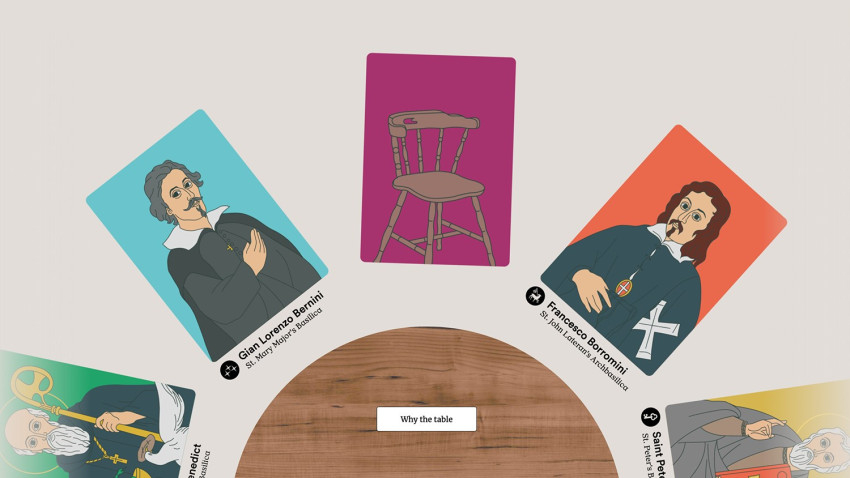 A minioldal az asztal szimbólumára támaszkodik, amelyet azok a szentek és művészek ülnek körül, akiknek élete és művészete formálta a bazilikákat. „Az asztal helyet kínál, ahol nemcsak ételt, hanem történeteket, tapasztalatokat is megosztanak, és ezáltal arra ösztönzi a látogatót, hogy megálljon egy pillanatra, és egy kis időt szenteljen a reflexiónak” – olvasható a közleményben.
