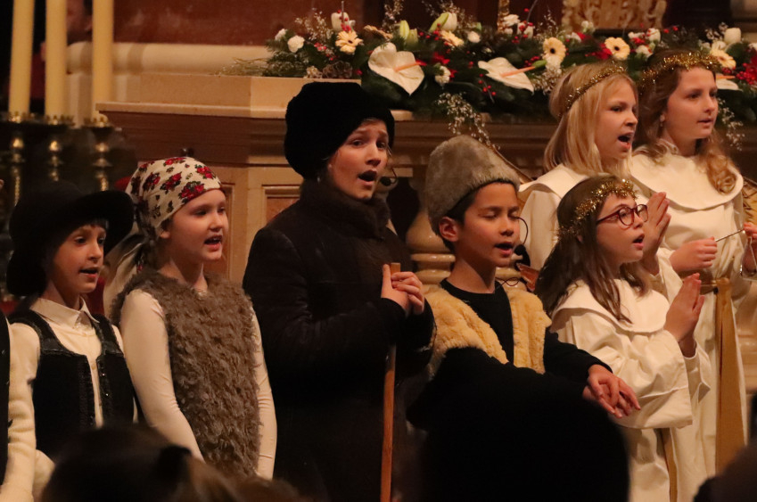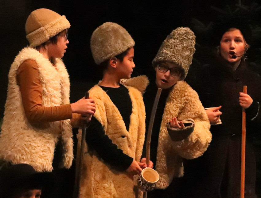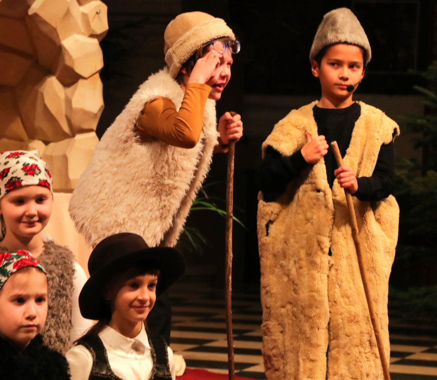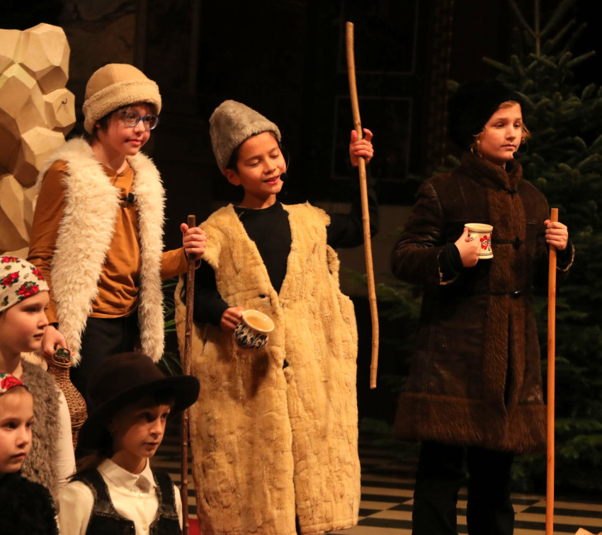 A kifordított bundát viselő betlehemi pásztorok párbeszédes, énekes-tréfás – sokszor egymást ugrató – játékát a Kodály Zoltán agyar Kórusiskola alsós tanulóiból álló Gaudete gyermekkara keltette életre Brebovszky Klára karvezető és Lang Miklós irányításával. A gyerekeket Csetneki Hanna kísérte citerán. Orgonán közreműködött Szotyori Nagy Gábor.