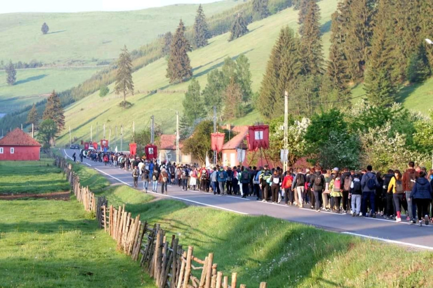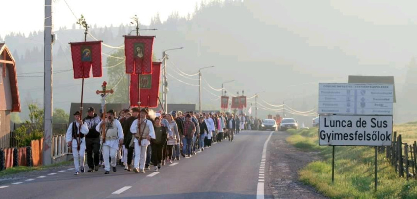 Ők viszik az imaszalagokat a Kárpát-medence és a világ minden szegletéből – emlékeztetett Csíkszereda polgármestere. – Az első lovas zarándokok hétfőn este keltek útra a Maros megyei Harasztkerékről, ők a marosszéki hívek és a diaszpóra üzeneteit viszik Csíksomlyóra.