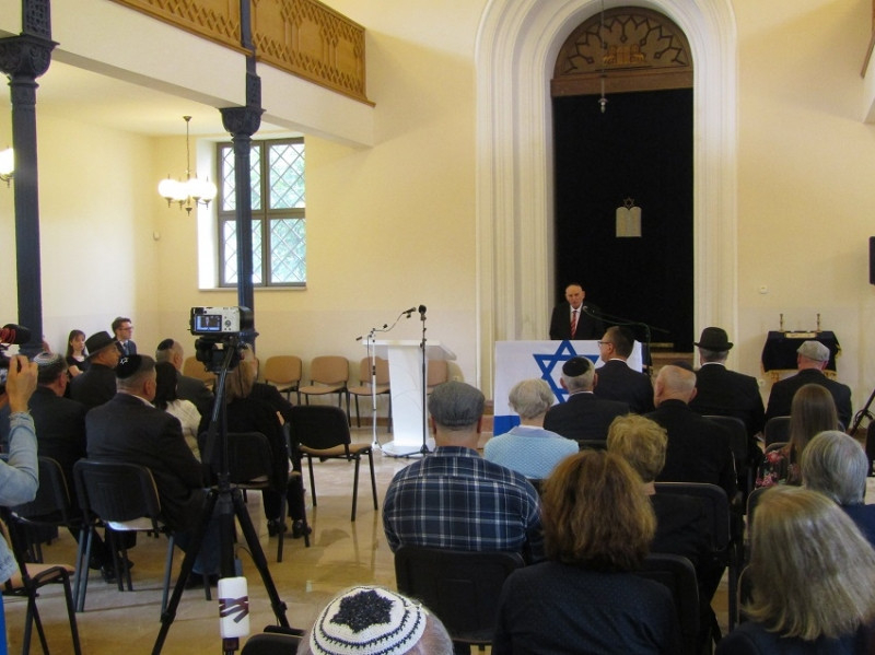 Turai János hitközségi elnök üdvözlő szavai után beszédet mondott mások mellett Marton Zsolt váci megyéspüspök; Csuka Tamás nyugalmazott református tábori püspök; Kunos Péter, a Mazsihisz ügyvezető-igazgatója; Surjányi Csaba, a Hit Gyülekezete váci és miskolci közösségének vezető lelkésze, valamint Rétvári Bence országgyűlési képviselő.