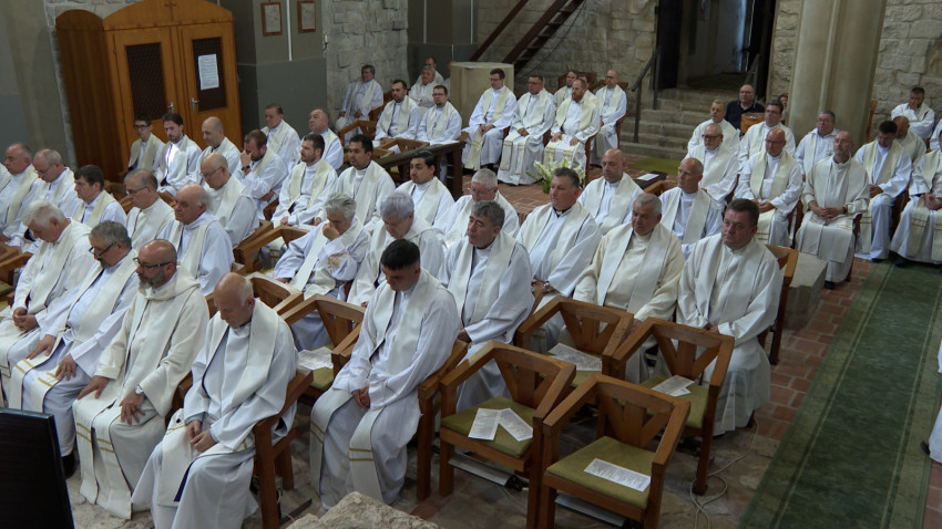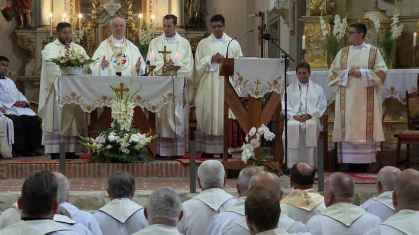 A közös szentmisén Juhász Ferenc pasztorális helynök szentbeszédében a papi lelkigyakorlat fő témájára, a Tábor hegyi eseményekre utalva Jézus színeváltozásáról, Mózessel és Illéssel történt találkozásáról elmélkedett.