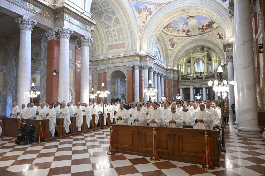 Palánki Ferenc rámutatott: nagycsütörtök a „rácsodálkozás napja” – rácsodálkozás a lét ajándékára, a meghívottságra és a papság kegyelmére.