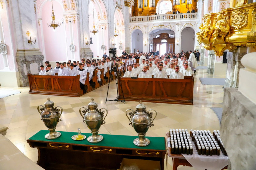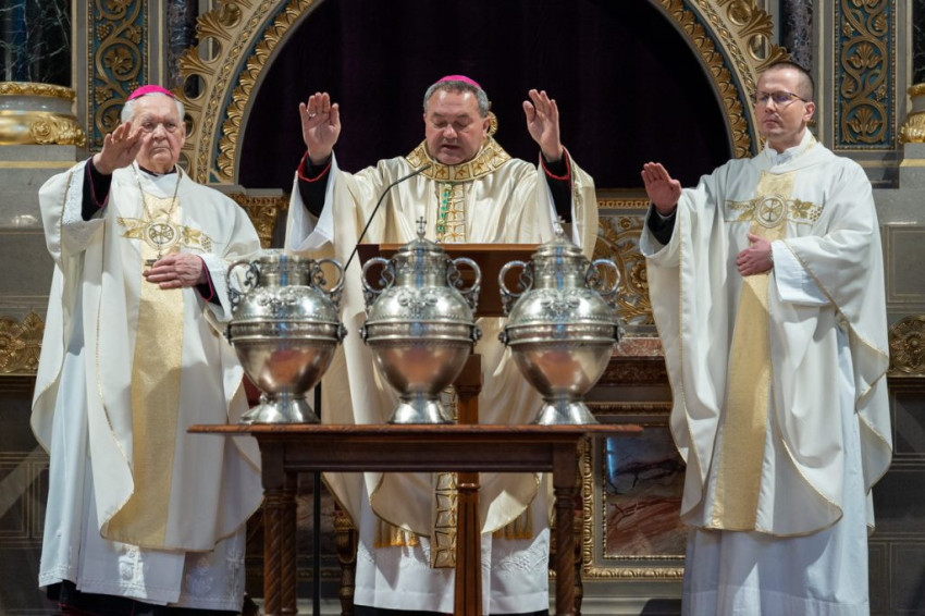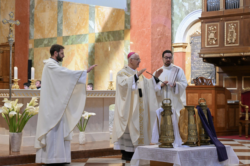 A nagyhét kiemelkedő liturgikus eseményét ünnepelte együtt a Veszprémi Főegyházmegye papsága és hívei nagycsütörtök délelőtt a Szent Mihály-főszékesegyházban, ahol Udvardy György érsek celebrált szentmisét, melyben sor került a papi ígéretek megújítására, valamint a keresztelendők és betegek olaja, illetve a krizma megáldására.