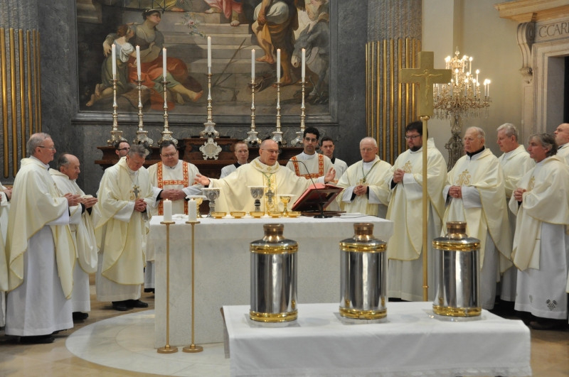 Ternyák Csaba érsek szentbeszédében kiemelte: Jézus éppen azt a részt olvasta: „az Úr lelke van rajtam, ő kent fel engem”. S azt mondja: „ma beteljesedett az írás”. Ez az írás ma a papság által válik jelenvalóvá azokban a közösségekben, ahol szolgálnak. Nagycsütörtökön különösen aktuális ez a jelenet, hiszen ezen a napon van a papság és az Eucharisztia alapításának ünnepe. A papokat a püspök felkente, így lettek Krisztus küldöttei, s a mai szentmisében szentelik meg a szertartásokhoz szükséges krizmát.