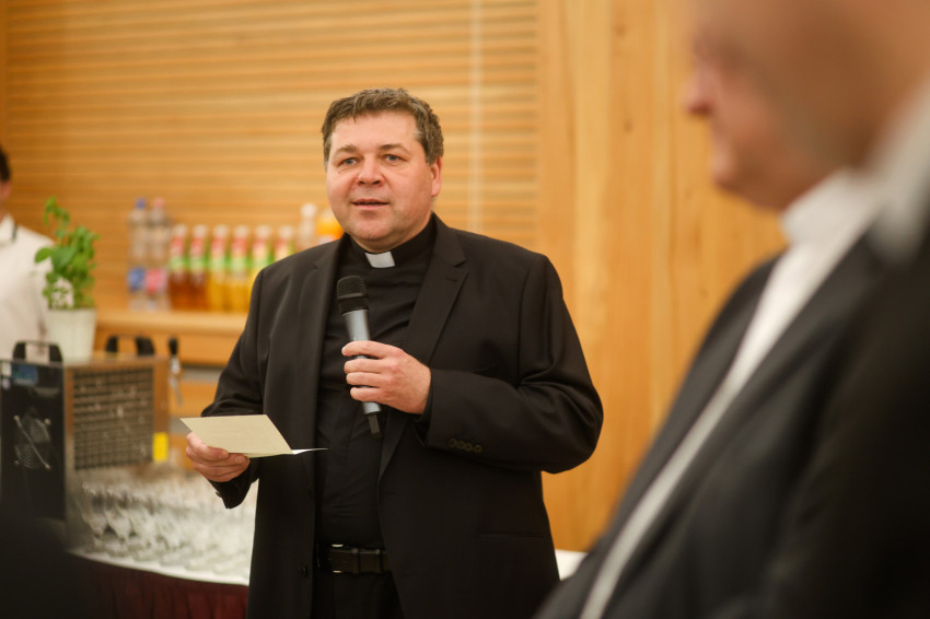 Veres András győri megyéspüspök, az MKPK elnöke azt kívánta köszöntőjében, hogy maga Isten adja meg a jutalmat, az áldást azért a munkáért, szolgálatért, amit ezekben a hónapokban és különösen is az utolsó napokban végeztek a közreműködők. Elárulta, hogy nagyon szereti a kézilabdát, és nagyon szimpatikusnak találta előző este a női kézilabda BL-döntő után az egyik fradista játékos nyilatkozatát, aki azt mondta, hogy bár elveszítették ezt a meccset, de ő nagyon elégedett belül, mert mindent odatettek, amit tudtak. „Mi meg is nyertük – tette hozzá a főpásztor. – Mindent odatettünk, akárcsak a kézilabdások, de hála Istennek, mindezt a győzelem tudatával konstatálhatjuk: érdemes volt, szép volt és jó munkát végeztünk. A Jóisten tudja, ki mennyi időt, szellemi, testi energiát öntött ebbe a munkába, de biztos vagyok benne, hogy együnknek sem maradt valósan tartaléka.