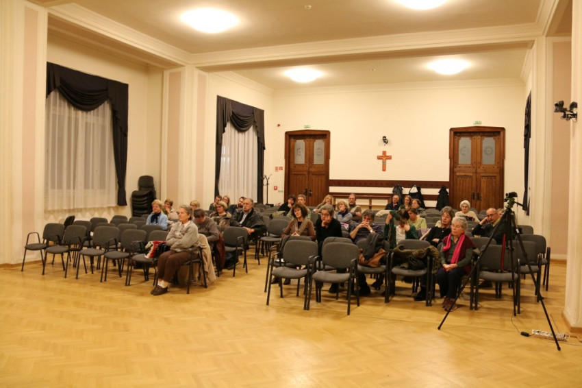 A film vetítését követően Sajgó Szabolcs SJ, a Párbeszéd Házának igazgatója beszélgetett Rácsok Gabriella teológussal, református lelkésznővel és Lázár Kovács Ákos esztétával, egyetemi tanárral.