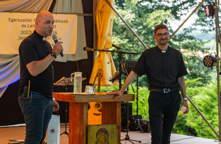 Ailer Gellért személyes történetein keresztül szólt hivatástörténetéről. Mint mondta, édesanyja építette, erősítette Istennel való kapcsolatát, a neokatekumenális út lelkiségén keresztül, mely egész családját megváltoztatta. Úgy fogalmazott: tragédiák sora, hozzátartozók halála is az örök élet hitét mélyítette. A katonaság után bankban kezdett dolgozni, kényszerűségből, s közben rájött: ennél többre teremtetett. 1997-ben a párizsi világifjúsági zarándoklaton kapta a meghívást Istentől, s lett pappá.