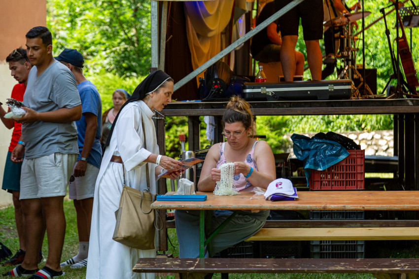 Ezt követően Nagy Krisztina egyetemi hallgatót hallgatták meg a fiatalok, aki Ferenc pápa előtt tehetett tanúságot hitéről a Szentatya budapesti látogatásakor. Mint mondta, nagy családban nevelkedett, most szerzett diplomát. Élete során hozott döntéseiről szólva úgy fogalmazott: igyekezett mindig a szívére hallgatni. Dicsőítő koncert formájában tolmácsolta gondolatait a hálaadásról, Isten szeretetéről, a hit megtartó erejéről, a Szentírásról.