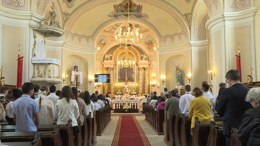 A rendezvény érseki szentmisével kezdődött, melyen Artner Péter plébános köszöntötte a főpásztort, és rámutatott a katolikus iskola feladatára, mely szerint „jó oltást” kell adni a gyerekeknek, hogy Istennek, a hazának és a közösségnek is jó gyümölcsöt teremjenek.