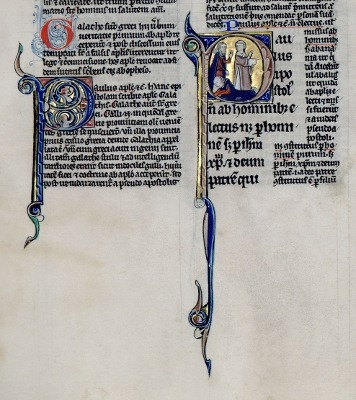A középkor zenei világát, könyvművészetét, valamint a szentírási szövegek megjelenését a zenében átfogóan reprezentálják a kiállításon látható kódexek. A 13. században másolták mindössze pár milliméteres betűkkel hártyavékony pergamenre a Biblia latiná-t (Párizs, 13. század közepe). A gyűjtemény egyik legértékesebb kézirata Szent Pál leveleinek Petrus Lombardus 12. századi párizsi érsek kommentárjával ellátott (Epistolae Pauli cum glossa Petri Lombardi, Párizs, 1250 körül), aranyozott iniciálékkal gazdagon díszített példánya.
