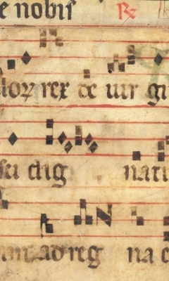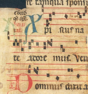 A Szentírás szavai a gregorián művekben, a zsoltározásban, az antifónákban jelennek meg. A gregorián ének a római katolikus egyház ősi, hivatalos, latin nyelvű éneke. Nagy Szent Gergely pápa (590–604) elsőként rendszerezte a keresztény egyház teljes dallamkincsét, és összeállította az akkor használatos énekek dallamgyűjteményét. A tárlaton a pergamenre másolt 14–15. századi gregorián kottákat, himnuszokat, antifónákat tartalmazó díszes kódexek mellett (Missale ad usum laicorum. Missale cum sequentiis, hymnis, antiphonis) helyet kapott Nagy Szent Gergely pápa Dialogorum című művének 14. századi másolata is.