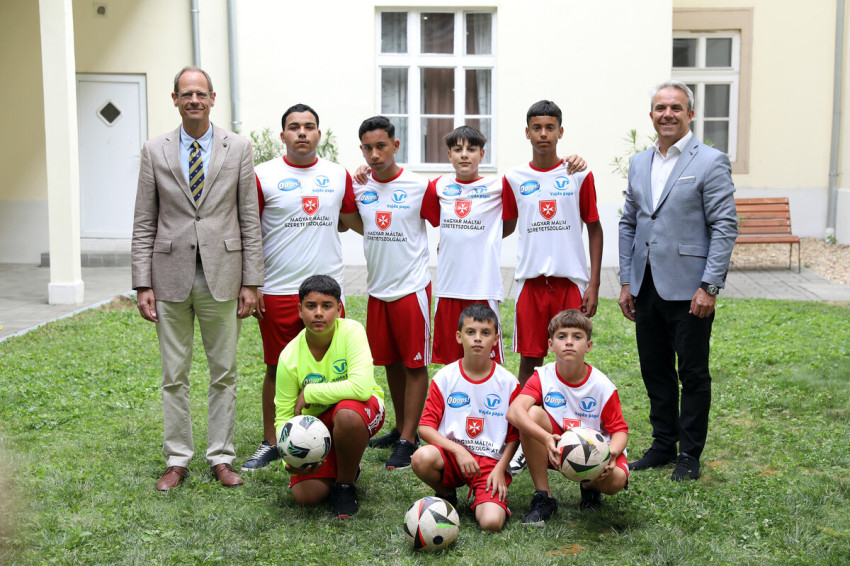 A két vezető ezt követően személyesen adta át a Máltai SE sárkeresztúri kis játékosainak a Vajda Papír ajándékcsomagjait és a cég logójával ellátott futballmezeket.