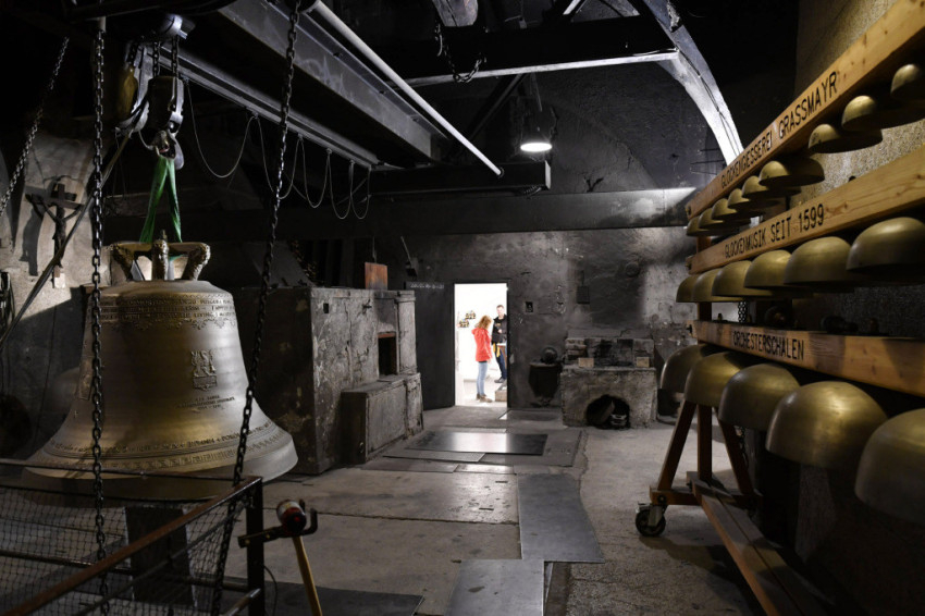 Először a harangöntő dinasztia „pátriárkája“, a 85 esztendős Christoph Grassmayr vezette végig a küldöttséget a kiállítótéren, részletesen bemutatva a teljes folyamatot, amely a tervezéstől, formázástól az öntésen át egészen az első megszólalásig tart. Ezt követően a jelenlévő papság román, kínai és magyar nyelven, más és más szertartás keretében imádkozott a vállalkozás sikeréért. Az esztergomi csapat imádsággal és énekkel kérte a Boldogasszony és Szent István király közbenjárását. Mivel az új harangok közül az esztergomi volt a legnagyobb, ezért ez került utolsóként sorra. Bár maga a formába való öntés alig három percig tartott, a teljes, közel egy órás munkafolyamat helyszínen való átélése mindenki számára maradandó emléket jelent.