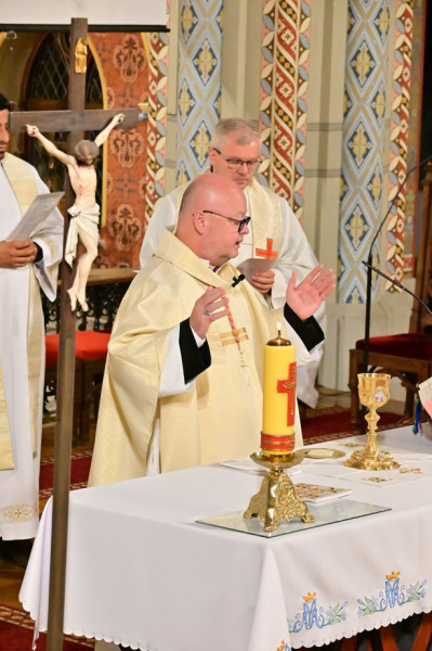Roland atya szentbeszédét azzal kezdte, ő hogyan kötődik ehhez a templomhoz. Tizennégy éves korától hatalmas vágyat érzett a templom iránt, ez a vonzás egyre erősebb lett. Majd amikor tehette, a reggeli szentmisével kezdte a napját. Ez a vonzás is szerepet játszott abban, hogy évek múltán pap lett belőle. Amikor a kőszegi templomba lép, mindig jó érzés fogja el.
