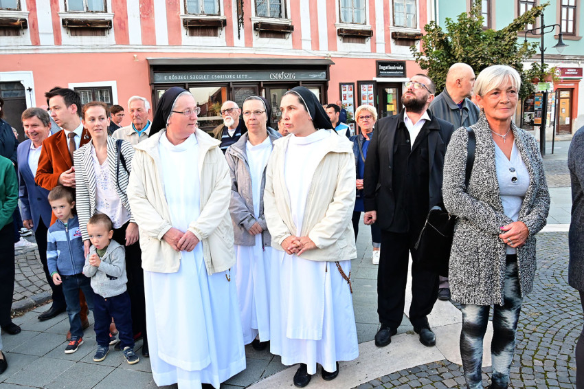 Ez a templom a kőszegiek otthona. Ez a templom csodás gyorsasággal nőtt ki a földből, a kőszegiek áldozatvállalását hirdeti a mai napig – hangsúlyozta a szónok. Hozzátette: a templom felszentelésének ünnepén Isten örömet ajándékoz az egész közösségnek. Velünk az Isten.