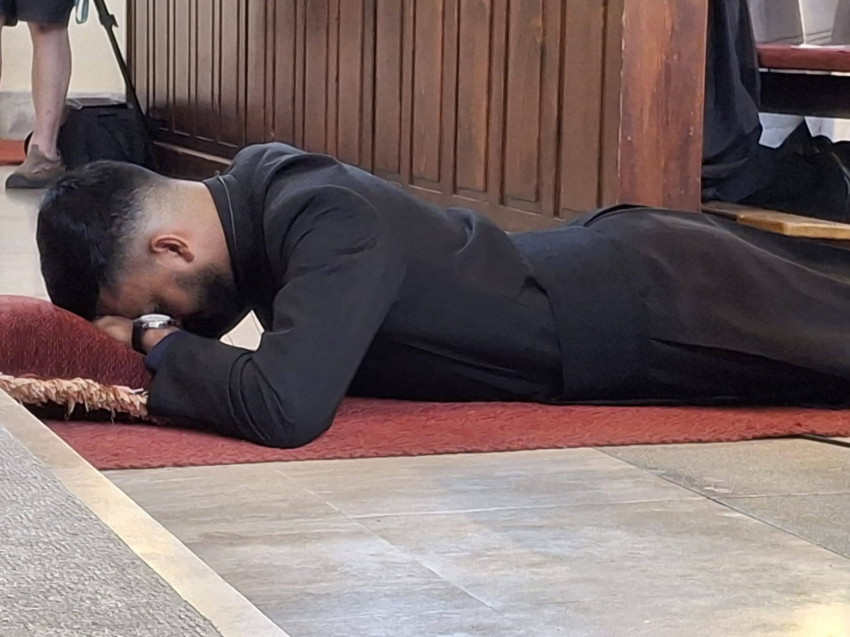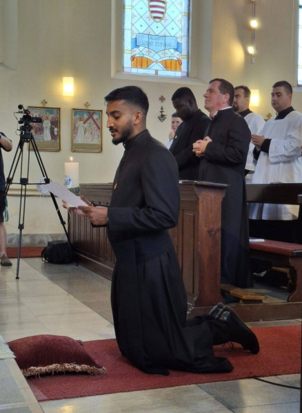 Ezután James Jimson Pullappallil SVD válaszolt a tartományfőnök kérdéseire, a Mindenszentek litániája alatt a földre borult, majd égő gyertyával a kezében ünnepélyesen letette örökfogadalmát.