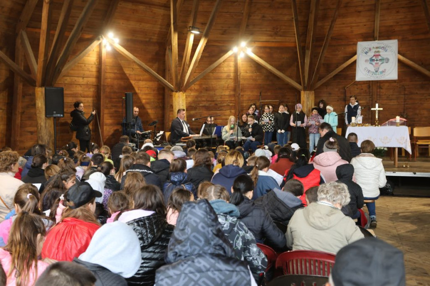 A nap indításaként a résztvevők a debreceni Megtestesülés-plébániára járó hittanosok és Jakab Zsuzsanna hitoktató vezetésével együtt elénekelték a 9. harangodi gyereknapra íródott, Járjuk a tábort kezdetű éneket.
