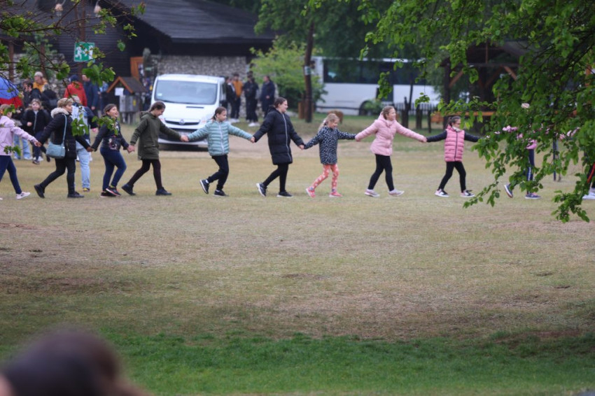 A gyereksereg körbe is járta a tábort, hosszú láncban.