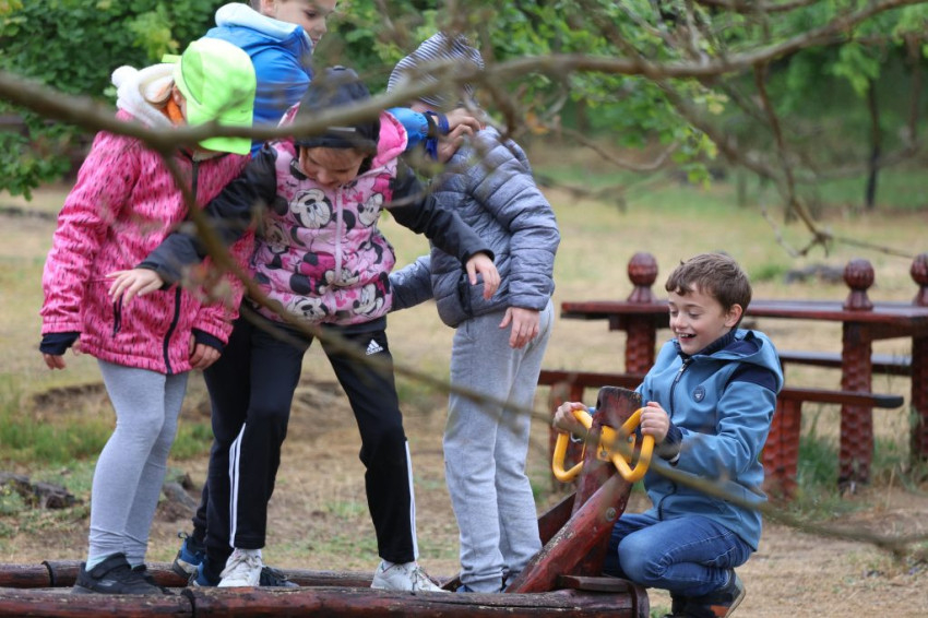 A nyíregyházi Szent Imre-gimnázium asztalainál papírvirágok készültek, illetve volt zsákbamacska és sok-sok játék.