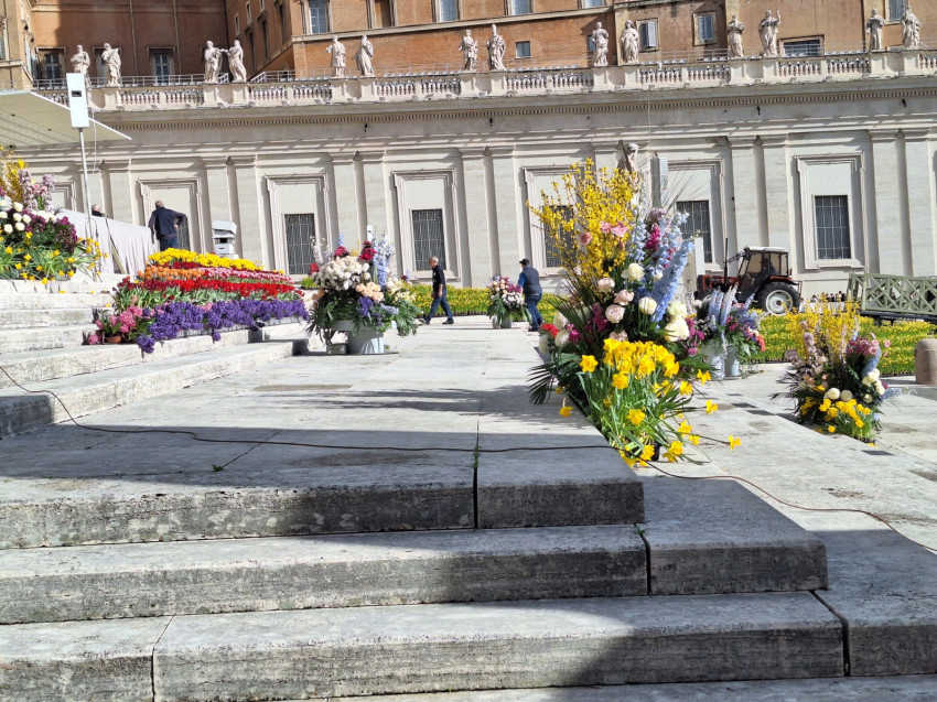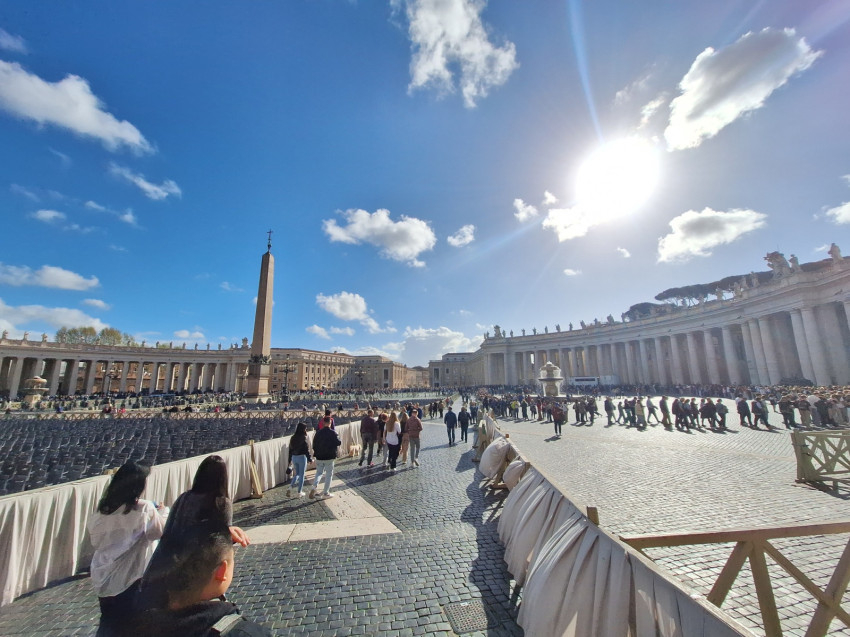 Húsvét keddjén korán reggel a vatikáni magyar kápolna szentmiséjére menet, miközben a feltámadás sugárzó napfénye ömlik a Szent Péter térre, csodálkozva látom, hogy tele a tér zarándokokkal, turistákkal és mindenki be akar jutni a bazilikába. Hosszú sor kígyózik körbe a négyes oszlopcsarnok mentén és már a második belső kör is formálódik. Örömmel látom mindezt, csak éppen nem értem a miértjét ennek a rendkívüli sokaságnak. Pápai esemény ma nincs, általános kihallgatás pedig holnap lesz. Héttől kilencig a bazilikában nem lehet csoportokat vezetni. Csak imádkozni lehet! Imádkozni! – amiért a templomot megépítették.