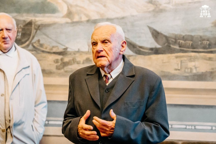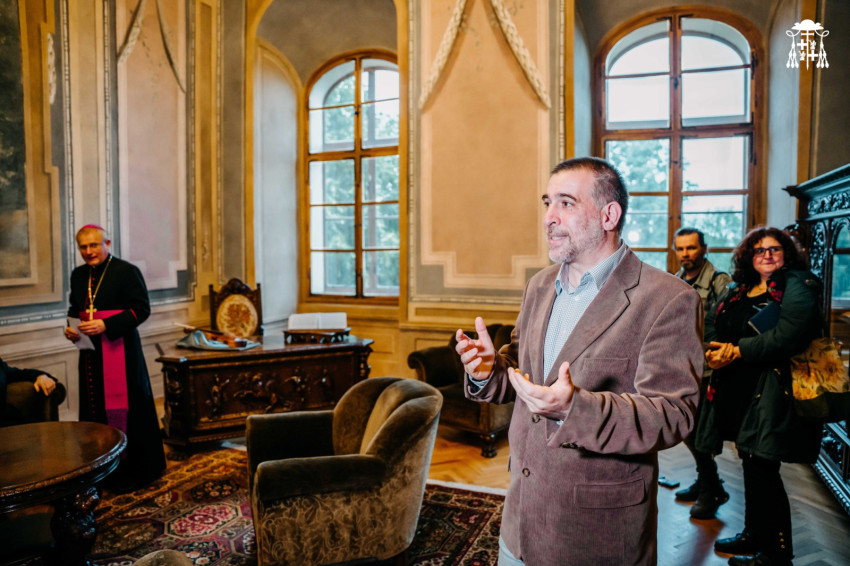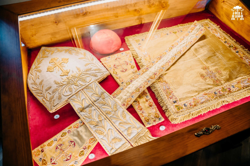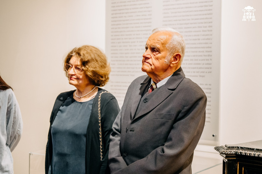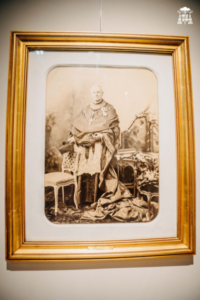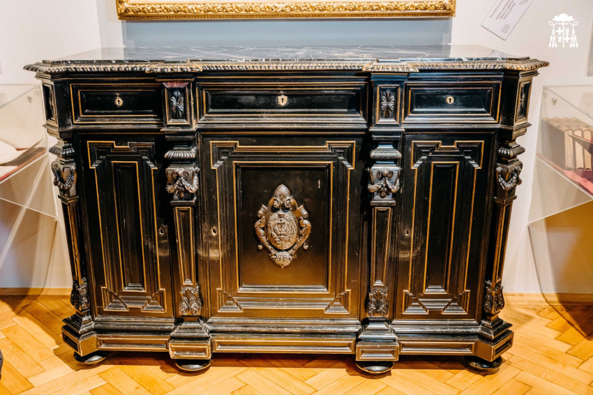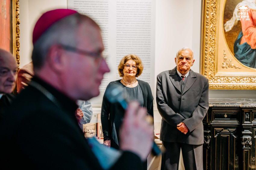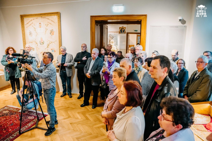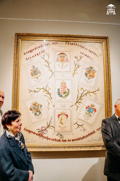 A gyűjteményvezető felhívta a figyelmet a kiállítóteremben látható, a bíboros címerével díszített értékes bútorra is, amelynek különleges, személyes vonatkozását az adja, hogy még szatmári püspöki időszakából való.