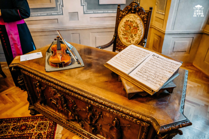 Az ünnepség második felében az első emeleten termet avattak a püspöki palotában az évszázadok folyamán kibontakozott komolyzenei tevékenységnek is: itt bútorok, régi kották, illetve egy hegedű is látható, melyet Artur Kaganovskiy hegedűművész ajándékozott Böcskei Lászlónak. A művész és felesége, Kaganovskiy Eszter brácsaművész egy rövid műsorral is készült az ünnepségre.