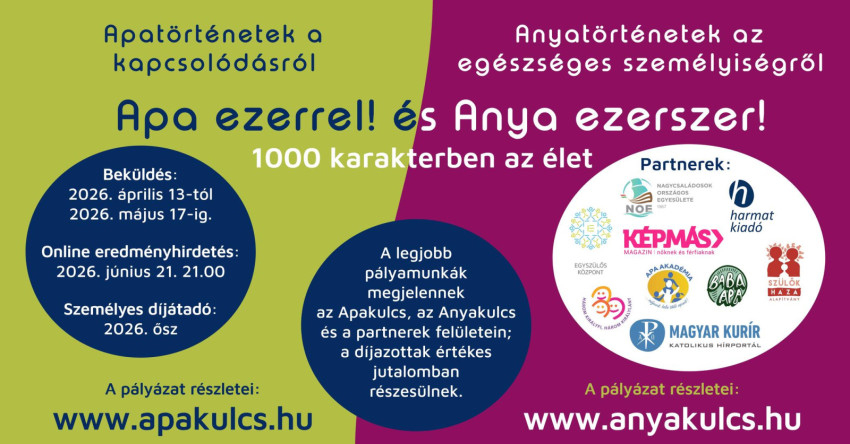 Az „Apa ezerrel! 2026” pályázatára várjuk a frappáns, emlékezetes, szívmelengető, örömteli vagy épp szívszorító; kapcsolódást megmutató apatörténeteket.