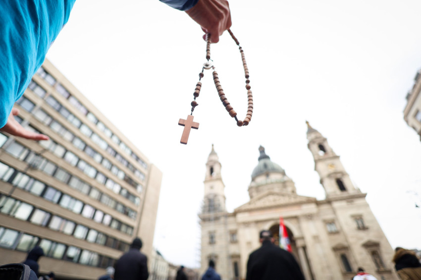 Márciusi TÉRdeplő rózsafüzér a Szent István-bazilika előtt