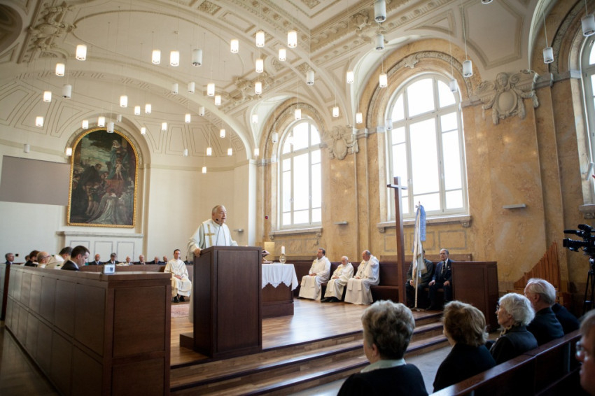 Borián Tibor szentbeszédében arra kereste a választ, mi kapcsolja össze a tanítványok, öregdiákok közösségét Kalazanci Szent Józseffel. Mit tettünk, minek örülhet rendalapítónk közösségünket látva – tette fel a kérdést, s megfogalmazta: tanítványnak lenni mindig feladat. Az eredményekben, eseményekben, találékonyságban gazdag múltat ünnepelve a megújulás szükségességére kapunk figyelmeztetést. A hagyományok tisztelete mellett arra kell törekedni, hogy újat tudjunk alkotni a mában, amikor a piarista rend 12 intézményért vállalt felelősséget.