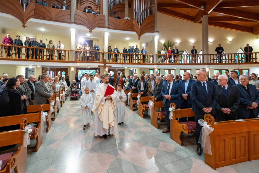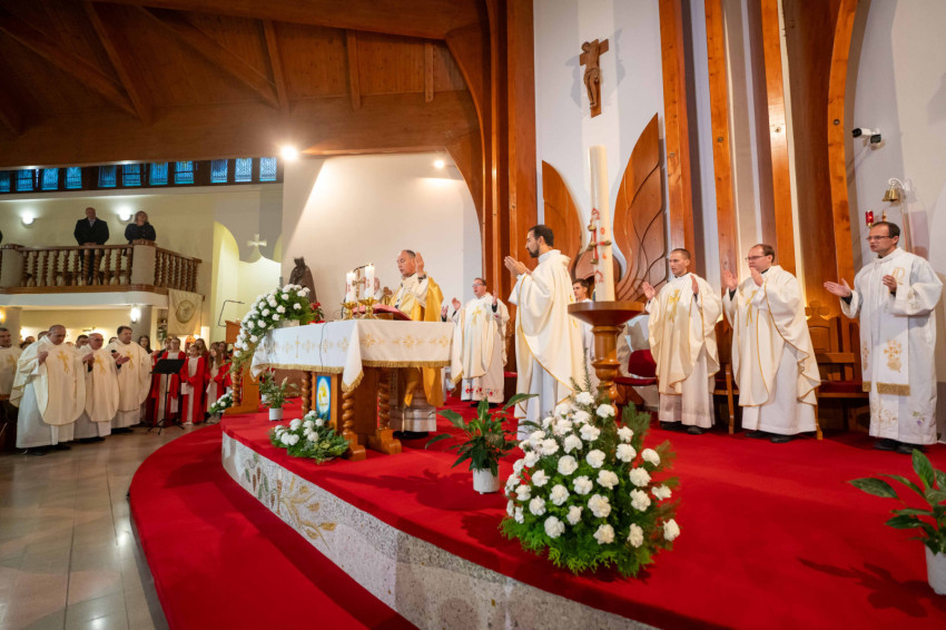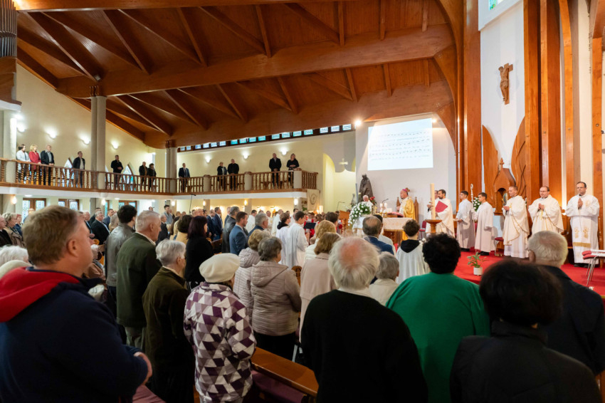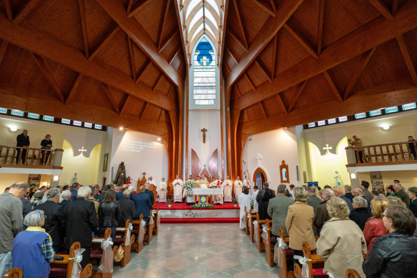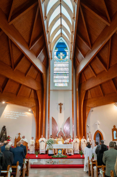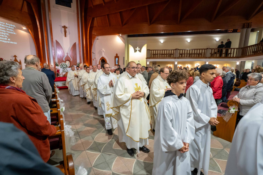Testvérek, a Szentlélekre kaptunk meghívást. Zakeus, gyere le, a te házadban kell ma megtérnem, és üdvösség költözött ebbe a házba. Így tekintsünk mostani ünneplésünkre. Így tekintsünk erre a templomra és minden egyes más templomra, ahol az Isten lakást vesz az ember körében. Nagy a mi méltóságunk, nagy a mi méltóságunk ára, de Jézus Krisztus ezt megadta nekünk, és a Szentlélekre hív. Ámen” – zárta szentbeszédét Udvardy György veszprémi érsek.