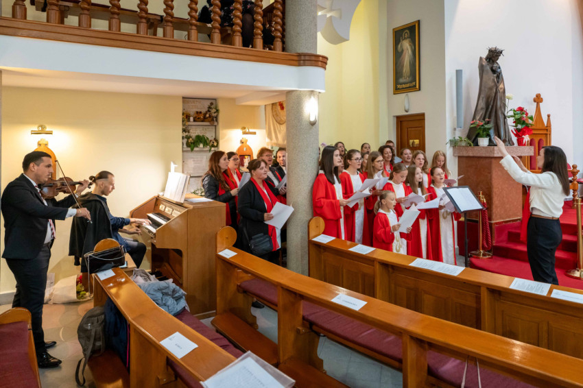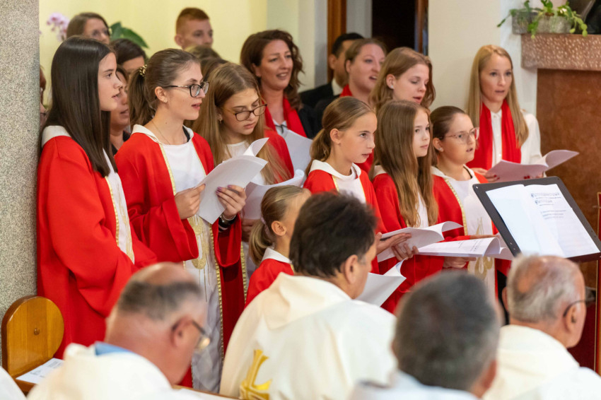 A szentmisén közreműködött a templom Ardens Ignis kórusa, Nagy István kántor-karnagy vezetésével; valamint a templom volt gyermek- és ifjúsági kórusa és a mostani gyermek- és ifjúsági kórus, Kiss Viktória karnagy vezetésével és Pál Zsolt orgonista-karnagy kíséretével, akik kisgyermekként szintén a templom gyermekkórusának tagjai voltak.
