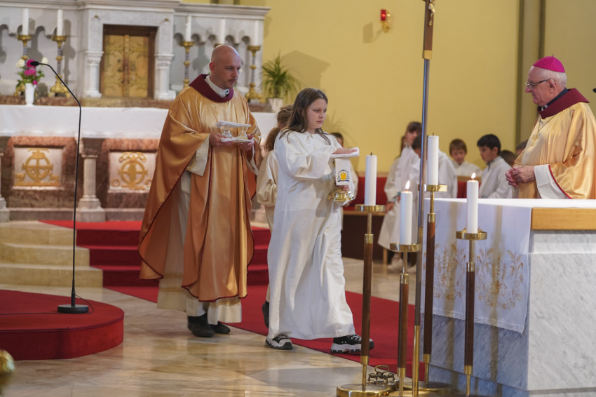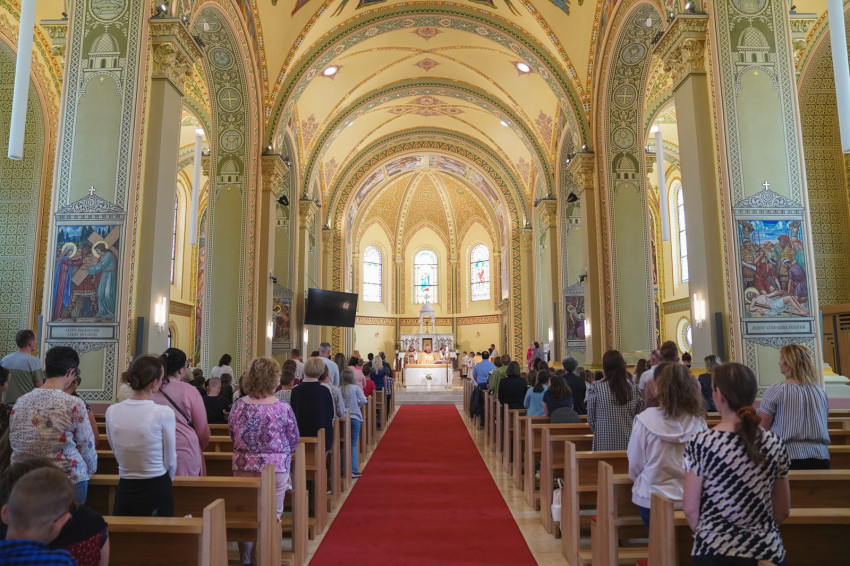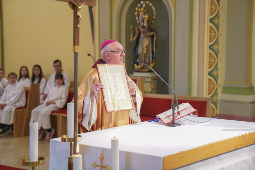 A faültetés után a Nagyboldogasszony-székesegyházban bemutatott szentmisén ünnepelték meg a katolikus általános iskola alapításának évfordulóját. A szentmisét Varga László megyéspüspök mutatta be.