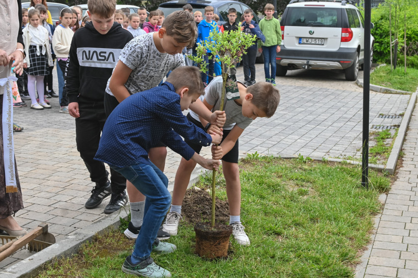 Május 17-én, pénteken jubileumi faültetéssel folytatódott az ünnepi programsorozat, amelynek főszervezői Kardosné Juhász Orsolya és Puczné Karvaly Kinga tanítók voltak.
