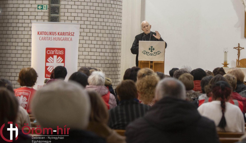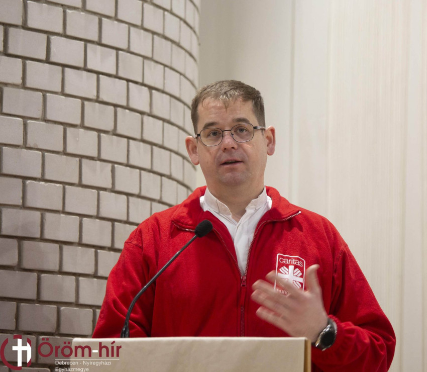 Csordás Gábor, a nyíregyházi Magyarok Nagyasszonya-társszékesegyház plébánosa, az egyházmegyei karitászigazgató gondolataiban többek között azt emelte ki, hogy a karitászmunka nem másodlagos dolog a keresztény ember életében. Az új adventi időszak elején megköszönte azok munkáját, akik a saját területükön, áruházakban gyűjtéseket szerveznek, vállalkozókat szólítanak meg, mert már nem kapnak adományokat külföldről, ugyanis Magyarország a jóléti társadalom kategóriába tartozik. És valóban, az éhenhalástól senkinek nem kell tartania, most inkább másfajta szegénységgel kell szembenéznünk. Ez a fajta szegénység nemcsak testi, hanem sokkal inkább lelki természetű, az elhagyatottságról szól. Idős emberek várják egyedül az ünnepeket, élik magányosan a hétköznapjaikat, elveszve érzik magukat ebben a világban. Hány és hány olyan elhagyatott gyermek is van, akik bár lehet, hogy családban élnek, talán az anyagi feltételek sem hiányoznak az életükből, de soha senki nem beszélget velük. Ők az Afrikában éhező gyermekekhez hasonlóan szerencsétlenek, mert a lelki táplálékukat nem kapják meg. Sok beteg emberrel is találkozunk, akik nem jutnak hozzá megfelelő egészségügyi ellátáshoz, és segítenünk kell a Kárpátaljáról, Ukrajnából érkezett testvéreinket is. Feladat tehát bőven van most is. A karitász munkatársaknak a feladata, hogy egyrészt anyagi, másrészt emberi segítséget nyújtson, mint amiről a karitász mottója is szól: „Embertől emberig” – fogalmazott Csordás Gábor.