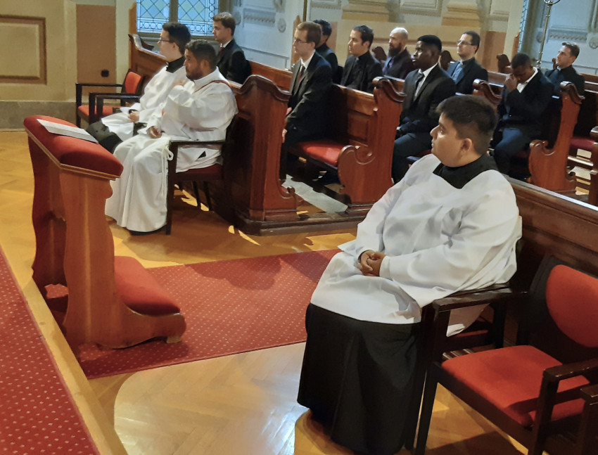 A tanévnyitó Veni Sancte a három új elsőéves kispap eskütételével, majd a himnuszok eléneklésével zárult.