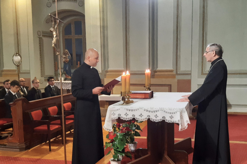 A Szentlélek segítségül hívása után Vízi János, a szeminárium új rektora ünnepélyesen esküt tett a papnevelő intézet kápolnájában.