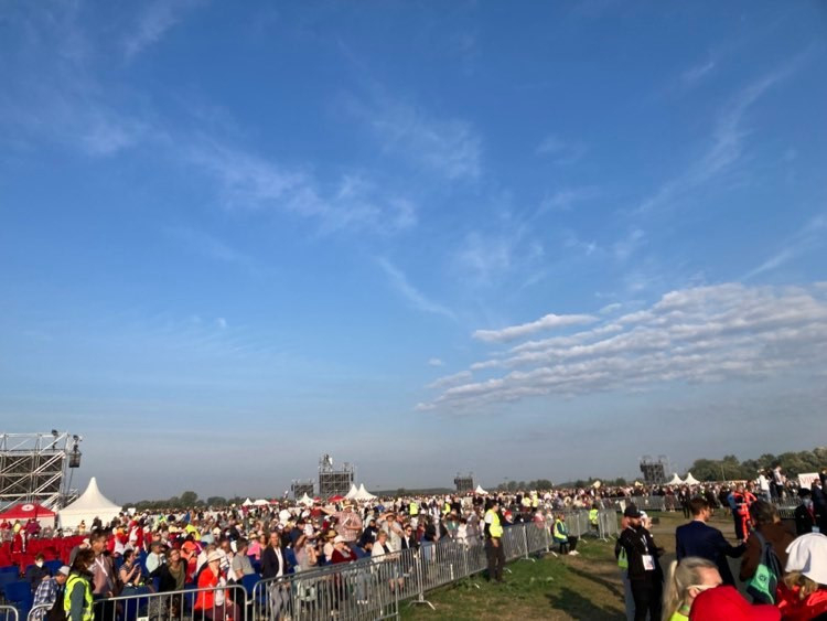 Két órával a szentmise előtt a helyszínre érkezve látható, hogy nagyon sokan még a biztonsági ellenőrző pont felé kígyóznak, sok család van itt, mosolygó, integető gyermekeket látni. Szlovákiában a mai emléknap nemcsak egyházi, hanem állami ünnep, munkaszüneti nap. A Fájdalmas Szűzanyában tisztelik az ország patrónáját.