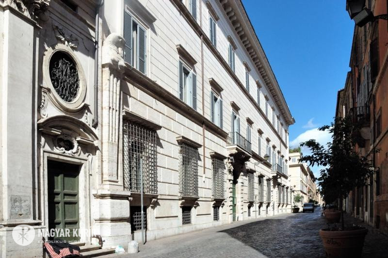 A magyar papnövendékek képzése hosszú idő óta biztosított Rómában. XIII. Gergely pápa (1572–1585) tekintélyével alapították meg a Magyar Kollégium 1579-ben, amely a rákövetkező évben egyesült a Német Kollégiummal, így jött létre a ma is működő Pontificium Collegium Germanicum et Hungaricum. A XIX. században azután felmerült a már felszentelt papok római továbbképzésének kérdése is. Ebben közrejátszott az is, hogy 1881-ben megnyitották a Vatikáni Titkos Levéltárat. Magyarország az elsők között szervezte meg annak lehetőségét, hogy kutatók jöhessenek az Örök Városba, és kihasználhassák ezt az egyedülálló tudományos lehetőséget. Körülbelül ebben az időszakban alakultak meg Rómában azok a nemzeti tudományos és kulturális intézetek, amelyek egyik fő profilja a város jellegéből és a vatikáni levéltári kutatások új lehetőségéből adódóan a történeti kutatások támogatása lett. Az elsők között volt a magyar történeti intézet, amelynek fő megszervezője Fraknói Vilmos (1843–1924) történetíró, nagyváradi kanonok volt, aki saját költségén épített Rómában egy villát erre a célra. Az épület ma a Magyarország Szentszék melletti Nagykövetségének ad otthont. A vesztes I. világháború okozta sokkból kitörési utat kereső Bethlen István miniszterelnök (1921–1931) és Klebelsberg Kuno kultuszminiszter (1922–1931) kultúrpolitikájának köszönhetően a magyar állam 1927-ben megvásárolta a Róma központjában álló patinás Falconieri-palotát, amely az itáliai barokk építészet egyik legnagyobb alakjának, Francesco Borromininek (1599–1667) tervei alapján épült.