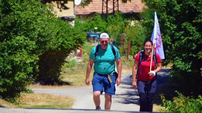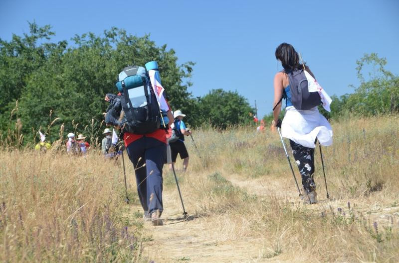 Így indultunk útnak, tizennégyen zarándoktársak, felvértezve a Székesfehérvári Egyházmegyei Karitász úti csomagjaival, ekkor még csak tizennégy ismerős. Csatlakozott hozzánk az első napon két szakaszzarándok is. Erzsi soha ki nem fogyó történetei, Balázs fia kamaszos energiája valamennyiünket átlendítettek a nap végi holtpontokon. Rekkenő hőség, felhő nélküli napsütötte országúti szakaszok vártak ránk.