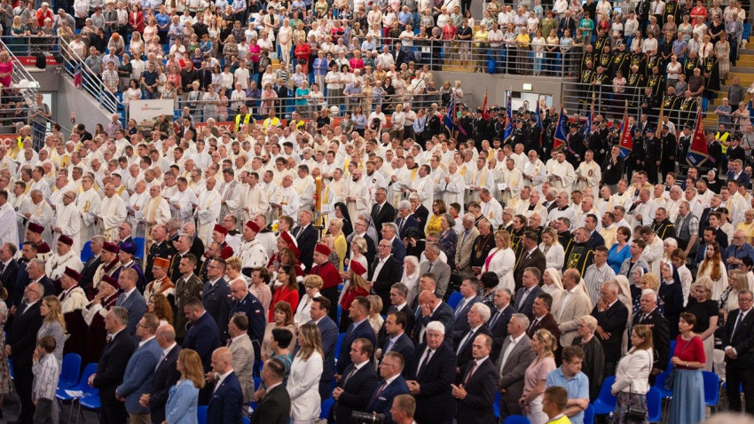 A pápai legátus homíliájában azt is kiemelte, hogy napjainkban „nagy reménységre” van szükség, amely nem a múló dolgokban, hanem Istenben gyökerezik, akinek „emberi arca van, és aki mindvégig szeretett minket”. „Ő a remény forrása, aki nem okoz csalódást.” A bíboros utalt a szinodalitásra, és felhívást intézett a közösségért való felelősségvállalásra. „Együtt alkossátok az Egyházat, és érezzétek magatokat felelősnek érte. Éljétek a hitet büszkén, de alázattal. Engedjétek, hogy a Szentlélek munkálkodjon a szívetekben!” – buzdította a sportcsarnok többezres hívőközösségét. A 950. évforduló megünneplése nemcsak megemlékezés a történelemről, hanem lelki hivatás is az Egyház jövője iránti felelősségvállalásban.