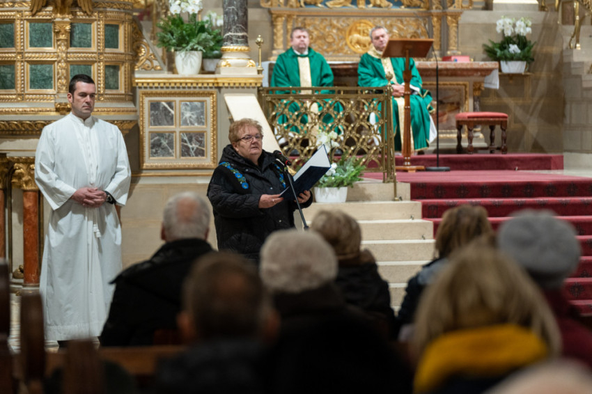 A szentmise után Englenderné Hock Ibolya, a Magyarországi Németek Országos Önkormányzatának elnöke személyes, családi történetbe ágyazott tanúságtételén keresztül elevenedtek meg az emberiség történelmének 80 évvel ezelőtt történt sötét fejezetei, melyet ártatlan embereknek kellett származásuk miatt elszenvedniük.