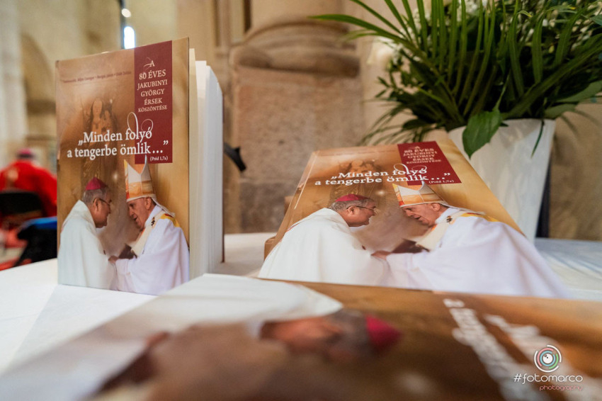 Hurgoi János irodaigazgató arra kérte a nyugalmazott érseket, „fogadja szeretettel ezt az emlékkönyvet, amelyet a főegyházmegye mély tisztelettel, hálával nyújt át mint közösségünk szeretetének kézzel fogható jelét és a sok áldozatos szolgálatáért mondott köszönetünk szerény kifejezését. Isten éltesse sokáig erőben és kegyelemben.”