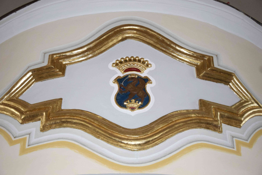 A pódium címerpajzsot idéző – az Eszterházy kegyuraságot felidéző – alakja nem csak gondolatilag tesz hozzá az együtteshez, de a szűk térben a liturgia végzésére jól használható teret, alkalmas elrendezést is megvalósít. A szentélyzáradék elé egy háromrészes „vendégfal” készült, záradékának vonalvezetése, ahogy a többi új berendezési tárgy íves kontúrjai is, harmonikusan illeszkedik a barokk térbe.