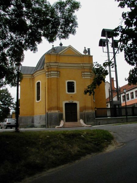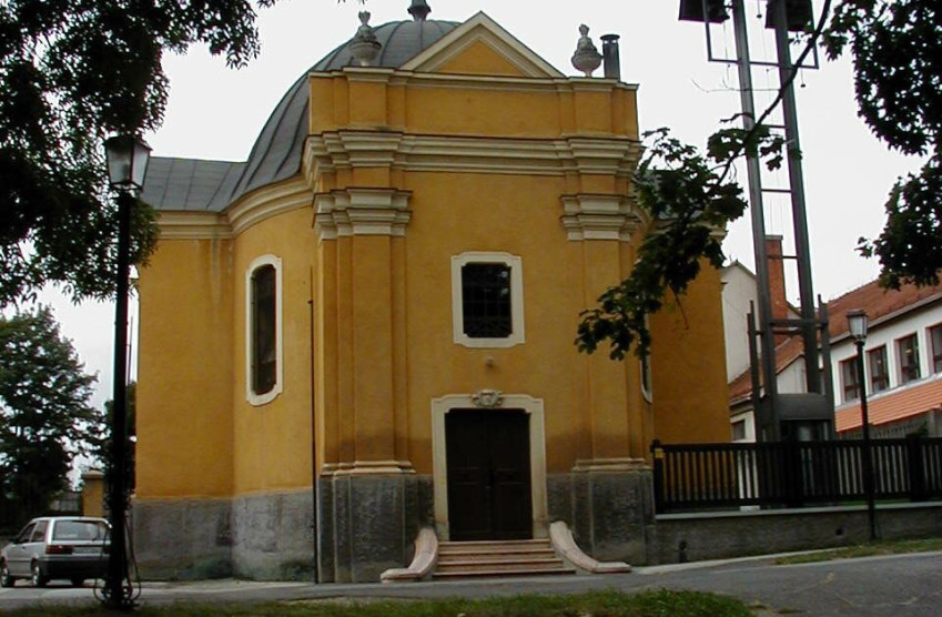 A klasszicizáló késő barokk, úgynevezett „kerek templom” építését Bajzáth József püspök engedélyezte. A munkálatokat 1777-ben Eszterházy Gábor kezdte meg, az épület két év alatt készült el. Sajátos elrendezése figyelemreméltó: görög kereszt alaprajzú, a rövid szárak közül a nyugatin nyílik a bejárat, mögötte falazott orgonakarzat, a két oldalsó épületrész a mellékoltároknak ad helyet. A keleti szár mai alakjában 19. századi bővítés eredménye; itt kapott helyet a sekrestye. A központi tér kupolával fedett (eredeti héjazata fazsindely), a szárakban a belsőben széles kosáríves boltív, a homlokzaton önálló, aediculaszerű, gazdagon tagolt pillérekkel és párkányokkal határolt, háromszögű oromzattal ellátott egységek. A külsőn az íves és egyenes falszakaszok szabályosan váltakoznak, a hajó íves oldalfalán jellegzetes nyújtott, alul-felül kosáríves záródású magas ablakok nyílnak. A kőkeretes bejárathoz néhány lépcsőfok vezet fel, a kapu szemöldökén az építtető Eszterházy család faragott kő címere látható.