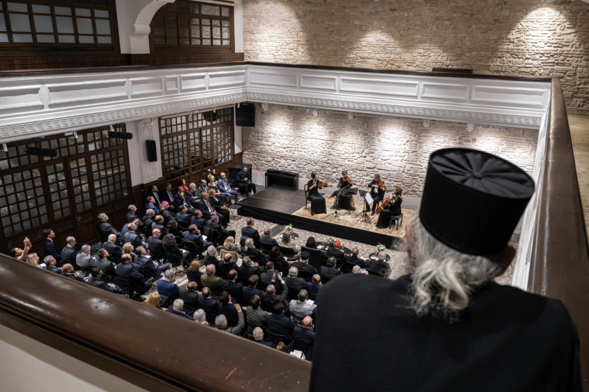 A koncert elején Hortobágyi T. Cirill főapát köszöntőjében az Exsultet húsvéti örömének kezdősorát idézte: „Exsultet iam angelica turba caelorum” („Immár ujjongjon a mennyben az angyalok kórusa)”, melynek, mint mondta, öröme a pannonhalmi bencés közösség szívében cseng, amikor visszaemlékezik az ökumenikus pátriárka tavalyi látogatására. Személyében – alázatában, imádságában és monasztikus életútjában – Krisztussal találkoztak és fogadták be, ő pedig a béke és a kiengesztelődés szavaival emlékeztette és megerősítette az egész közösséget a szolgáló szeretet útján.