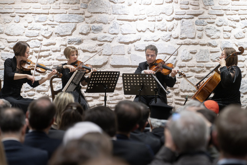Az este folyamán elhangzott Mahdi Kousay iraki csellóművész előadásában az Improvizáció egy arab népdalra a közel-keleti konfliktus arab áldozataira emlékezve; Maurice Ravel Kaddisha Kádár István hegedűművész előadásában a Közel-Kelet zsidó áldozataira emlékezve; Reinhold Gliére Vonósnégyes No.1. című műve az ukrajnai háború áldozataira emlékezve, valamint Bartók Béla Román népi táncok című szerzeménye, ebben közreműködött Bodó Antónia és Molnár Noémi hegedűn, Gálfi Csaba brácsán, Liptai Gabriella csellón.