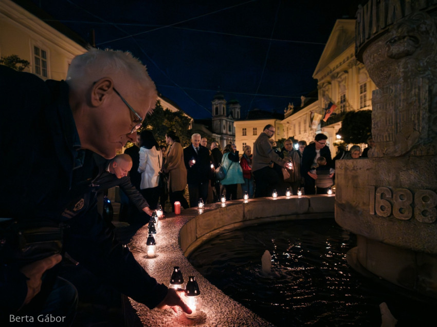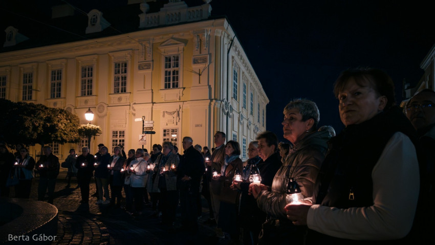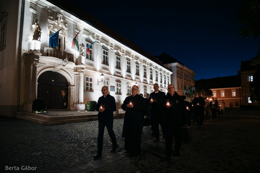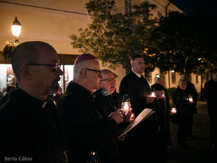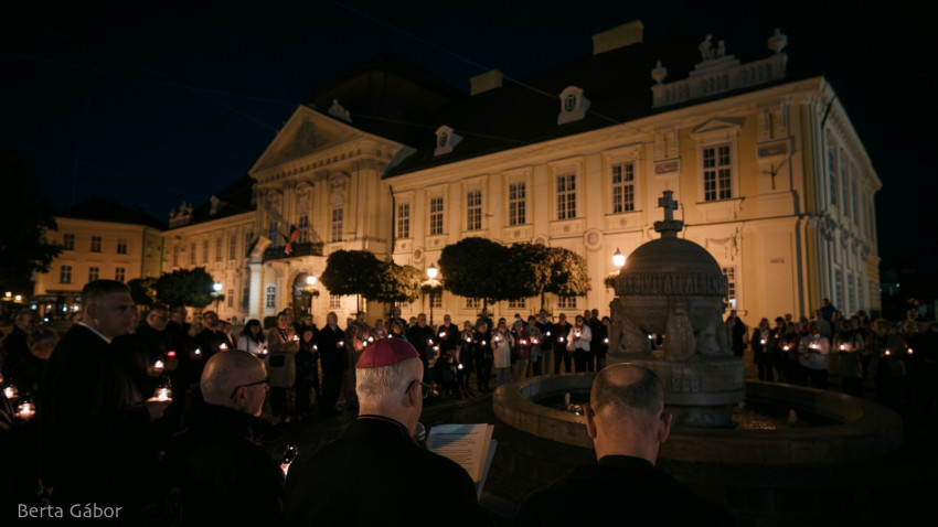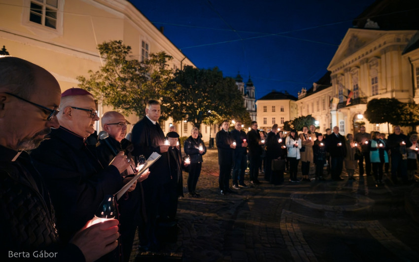 A szentmisét követően az egybegyűltek gyertyás körmenetben a főtérre vonultak imádkozni. A főpásztor elimádkozta Assisi Szent Ferenc Tégy engem békéd eszközévé kezdetű imáját, majd a békefohászt a Mennybe Fölvett Boldogságos Szűz Máriához. A közösen elmondott Miatyánk és a Himnusz után a jelenlevők a belváros szívében elhelyezték a béke gyertyáit az Országalma díszkútja körül.