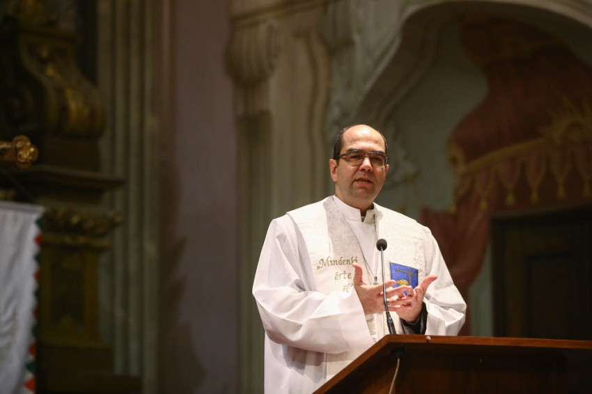 Végül egy történettel figyelmeztetett arra, milyen veszélyes a közömbösség: Egy város szélén kigyulladtak a szegényes házak. A város központjában élők órákon át nem törődtek vele, nem küldtek tűzoltókat, sokan azt gondolták, talán jobb is így, vagy az ott lakókat okolták a tűzesetért. Egyszer csak szél kerekedett, felkapta a lángokat és a fél város leégett. Meg is magyarázta a történet aktualitását: Afrikában, a Közel-Keleten tűz van és sokan úgy gondolják, nem érinti őket, ráadásul talán azt is gondolják, az ott élők a hibásak érte. Isten azonban nem közömbös és arra tanít minket, hogy mi se legyünk azok. Adjuk meg a dicsőséget Istennek, hogy megkaphassuk a béke ajándékát a földön – zárta homíliáját Székely János püspök.